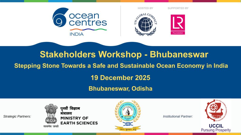 Ocean Centres India (hosted by the United Nations Global Compact and supported by the Lloyd’s Register Foundation) is organising a Workshop on “Stepping Stone towards a Safe & Sustainable Ocean Economy in India” with a thematic focus on ‘Fishing & Aquaculture, Shipping & Ports’ on 19 December 2025 at the Utkal Chamber of Commerce & Industry Limited (UCCIL), Bhubaneswar